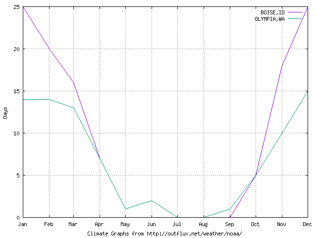 Mean days <= 32F