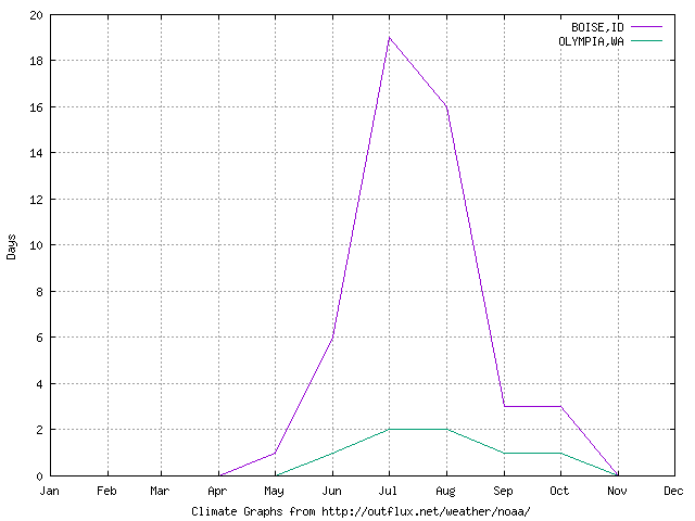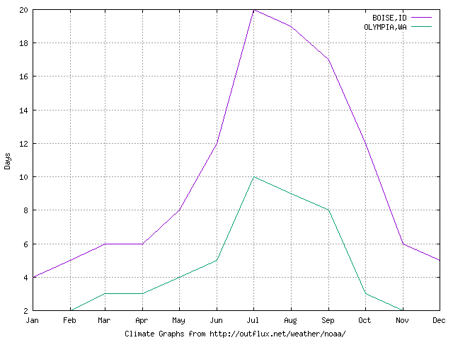Mean days >= 90F